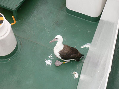 新世丸船上のコアホウドリ(写真提供:新世丸)。