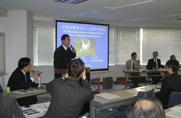 | ●トキ野生復帰の集会が開催されました 2007年11月に新潟と東京でそれぞれトキの野生復帰に関するシンポジウムとワークショップが開催されました。それぞれの催しに山階鳥研は実行委員として参加し、山岸哲・山階鳥研所長が実行委員長を務めました。 シンポジウムに先立って11月23日に東京都内で開催されたワークショップには、トキ野生復帰の関係者や専門家約60名が集まり、活発な議論が交わされました。また、25日に新潟市内で開催された「トキ野生復帰日中国際シンポジウム」では定員を大幅に超える300人以上が参加しました。 (山階鳥研NEWS 2008年3月号より) |